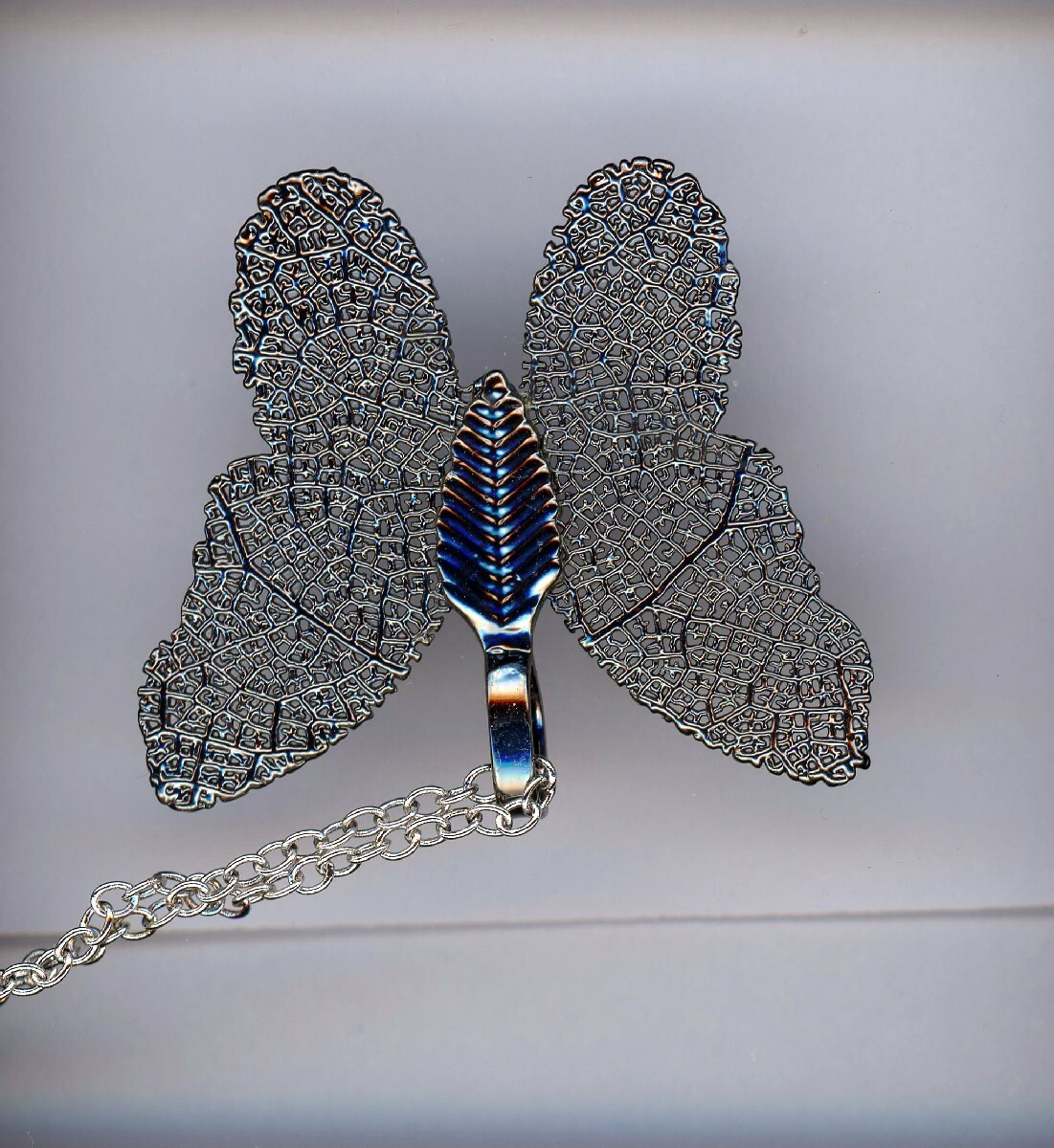 Fashion Handmade Gray Colored Butterfly with Wings with micro sized Rhinestone Necklace This necklace piece is silver in color and WING shaped. All done with a Silver chain of 18 inches. A Beautiful Creation.