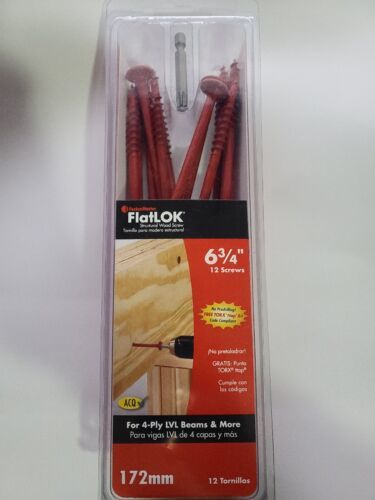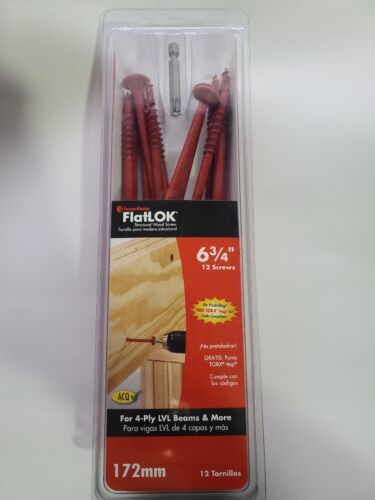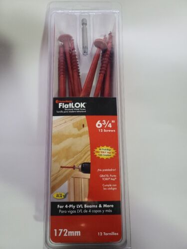 You are Buying a brand New And Factory Sealed FastenMaster FlatLOK 6-3/4 in. Structural Wood Screw (Single Fastener) Model # FMFL634-INDY.... multi-purpose structural wood screw for fastening multi-ply LVL, girder trusses and multi-ply lumber beams. The fastener is designed to eliminate the task of through bolting or nailing multiply of engineered together and can be installed from only 1-side. FlatLOK's can be driven with a traditional TROX 40 bit or the supplied driver bit and zip right in all while meeting code. Wafer head offers increased pull-through strength. Counter sinking nibs for flush setting