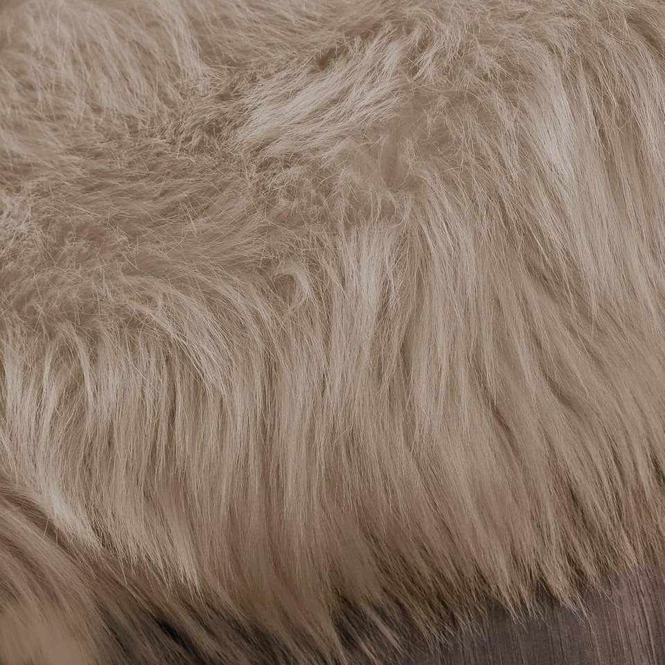 Faux Fur Sheepskin Rug, Luxury Fluffy 2 x 4 ft Sheepskin, Brown Beige Frosted...