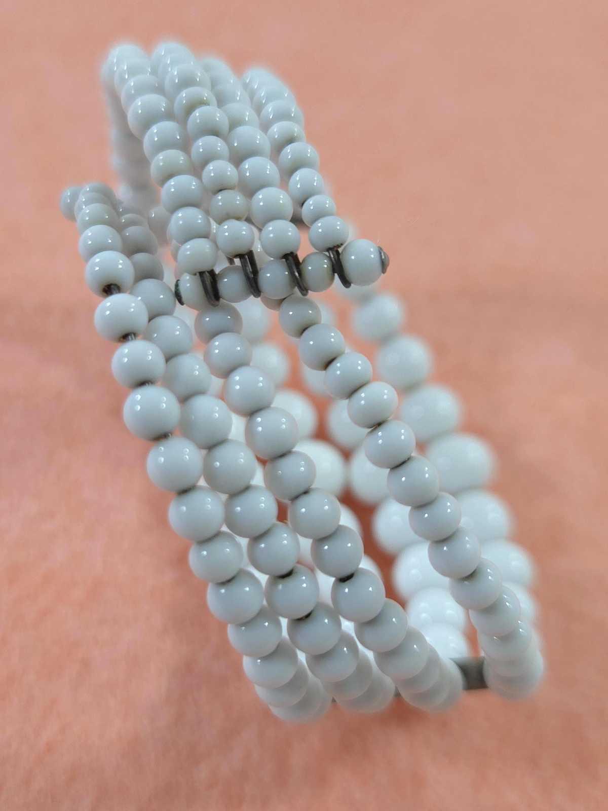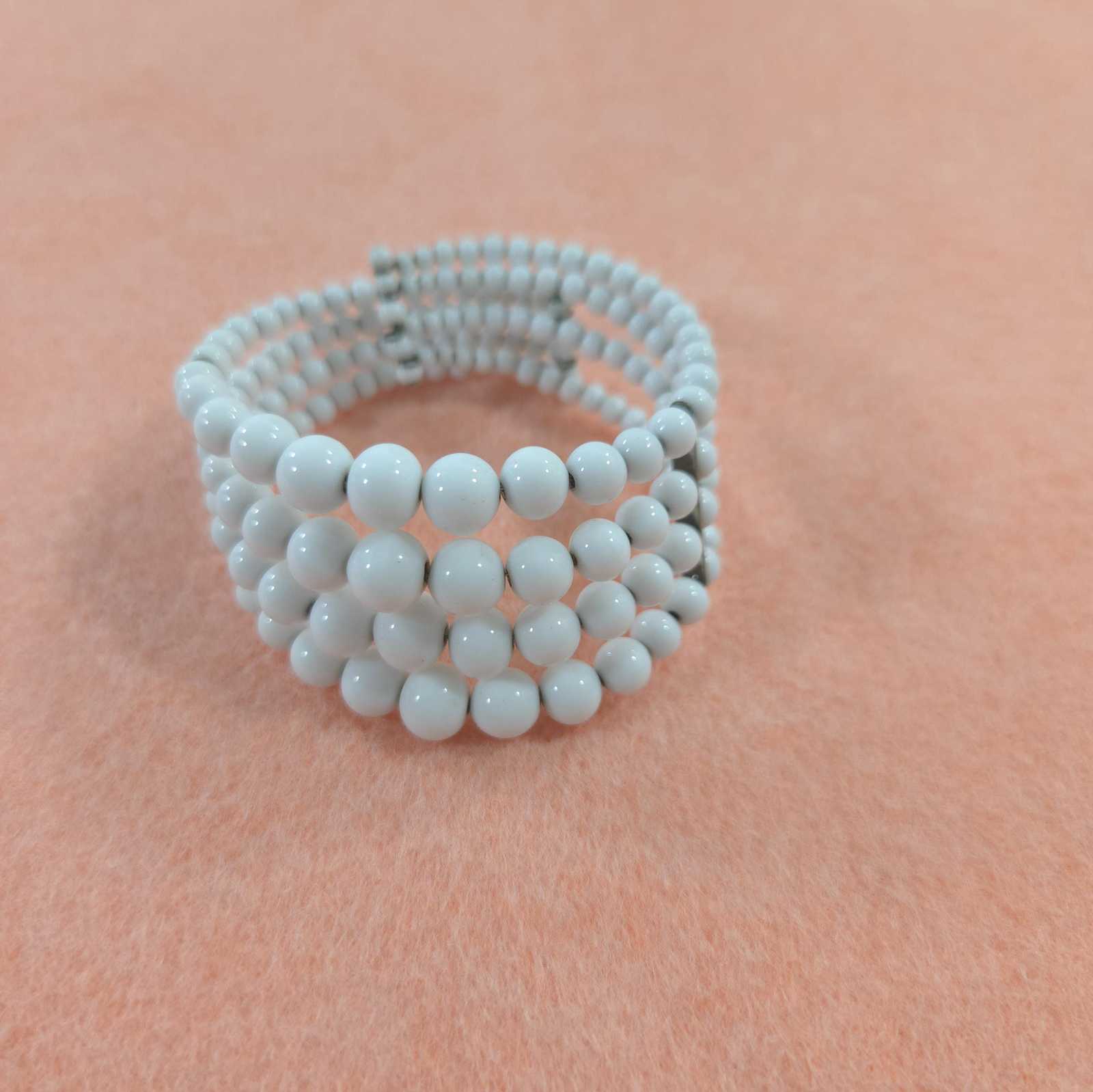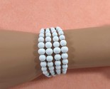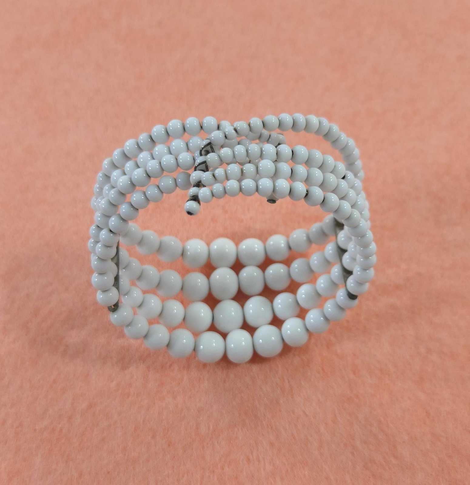 - Faux Pearl Multistrand Memory Wire Bracelet, White Beaded Adjustable Cuff Boho L