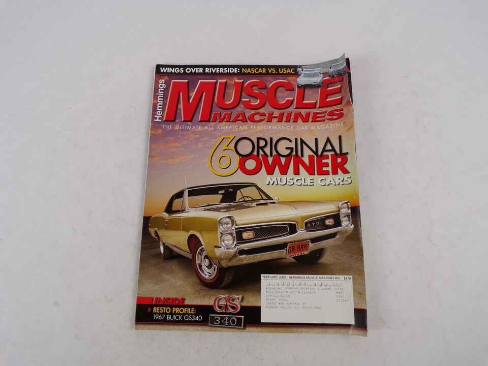 Featuring: February 2009 Muscle Machines Magazine 6 Original Owner Muscle Cars Wings Over - Wings Over Riverside: Nascar Vs. USAC - Magazine is complete and in nice condition - Showing only light to moderate wear