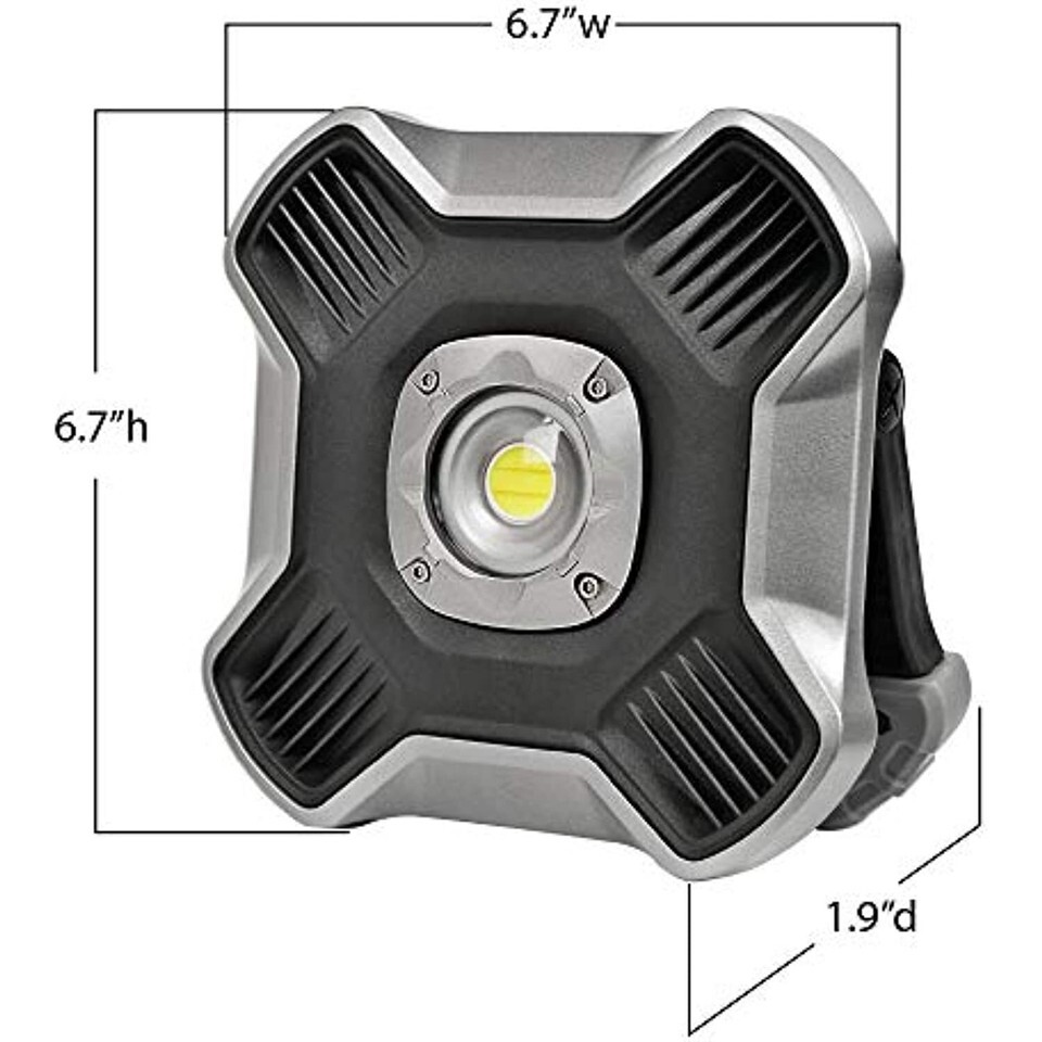 ULTRA BRIGHT, COMPACT LONG-LASTING ? Superior quality 2000 lumens rechargeable work light is heavy-duty constructed for extra durabiltiy; Durably constructed with cast metal housing, UL wet rated and is suitable for indoor/outdoor use