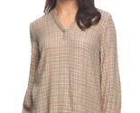 Felina Womens Top Cream Multicolor Plaid V-Neck Long Bell Sleeves Lurex Soft