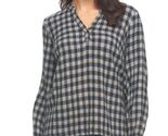 Felina Womens Top Navy Blue Multicolor Plaid V-Neck Long Bell Sleeves Lurex Soft