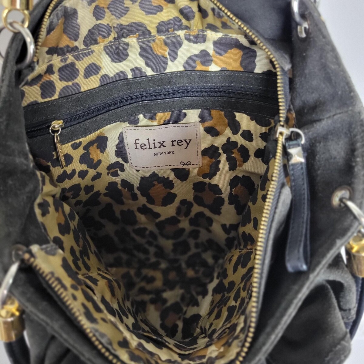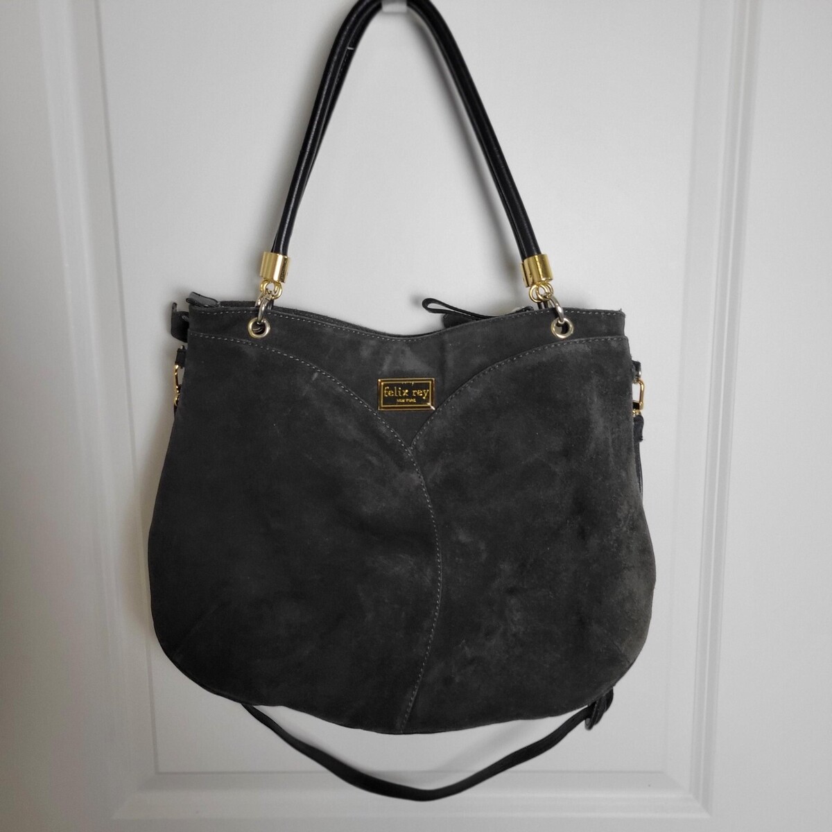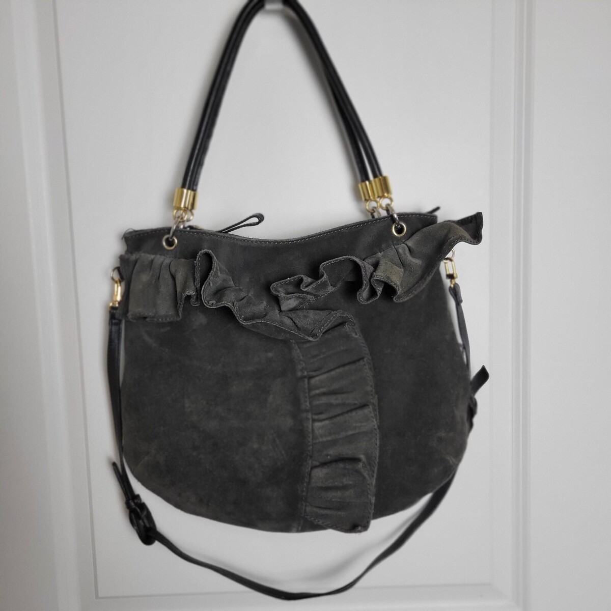 - Felix Rey New York Grey Suede Leather Ruffle Gypsy Hobo Handbag Purse