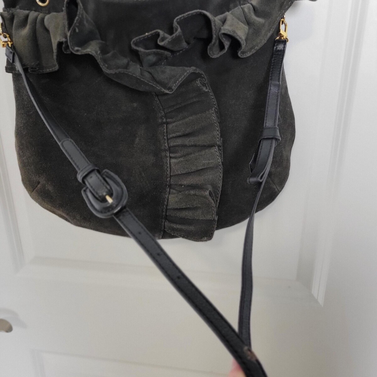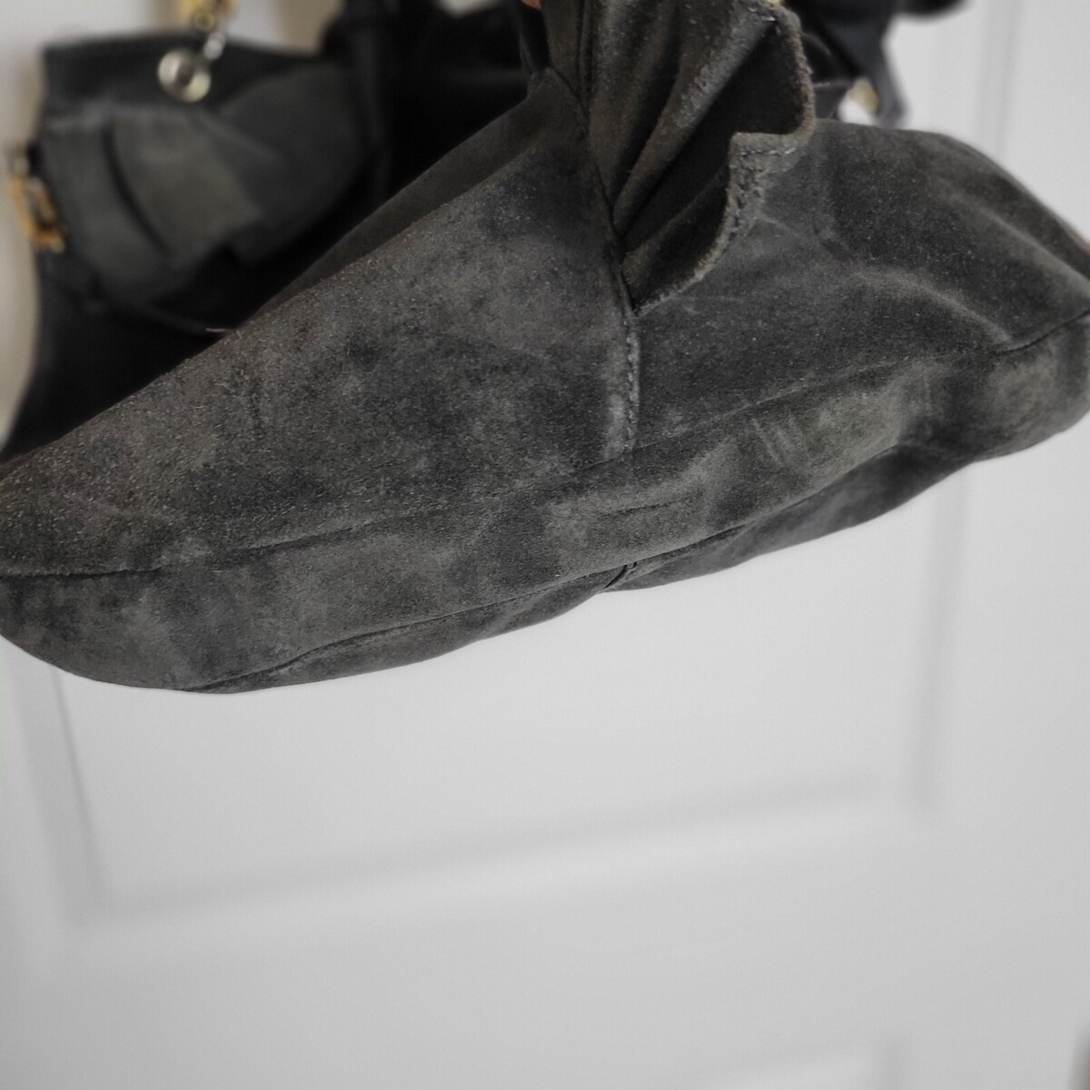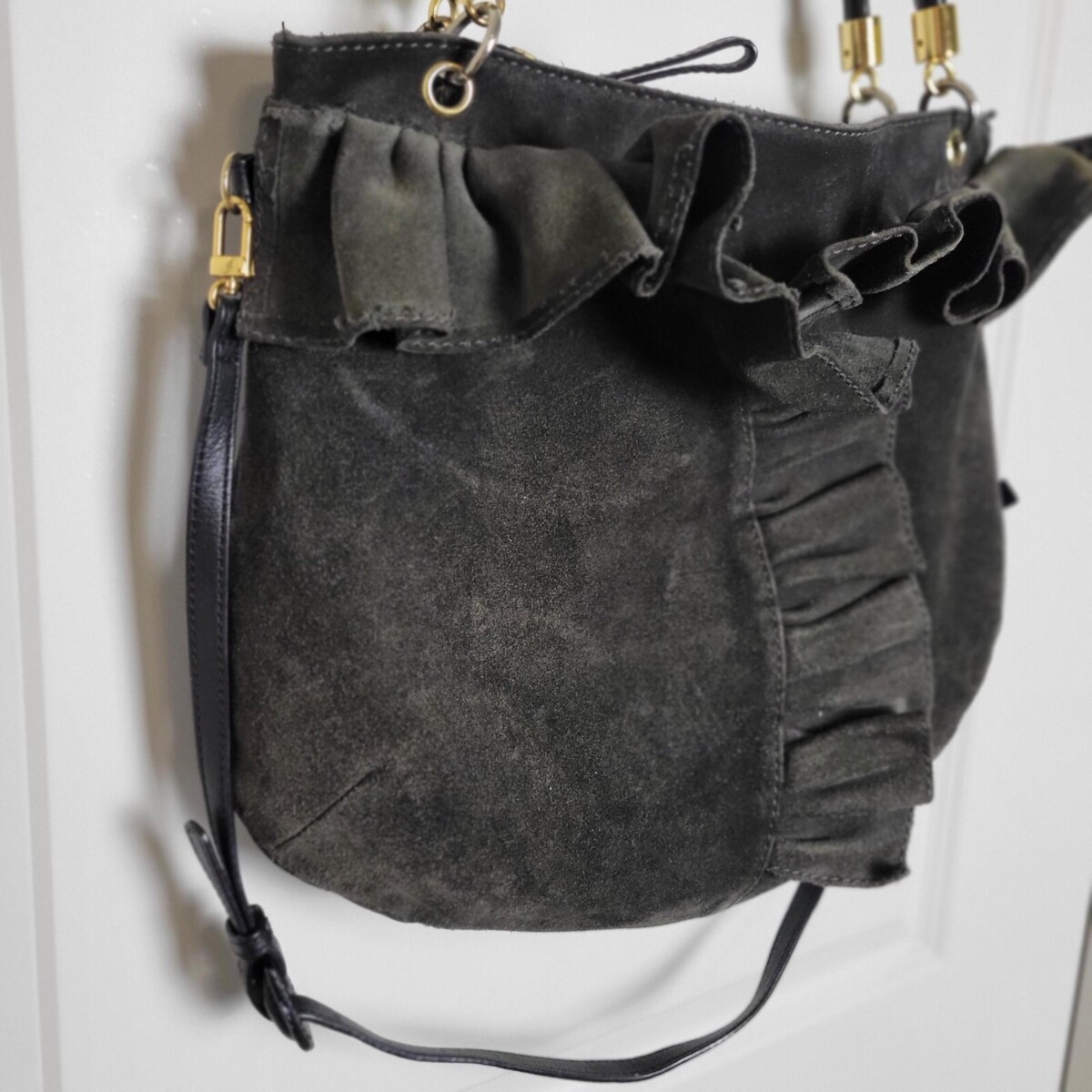 - Felix Rey New York Grey Suede Leather Ruffle Gypsy Hobo Handbag Purse
