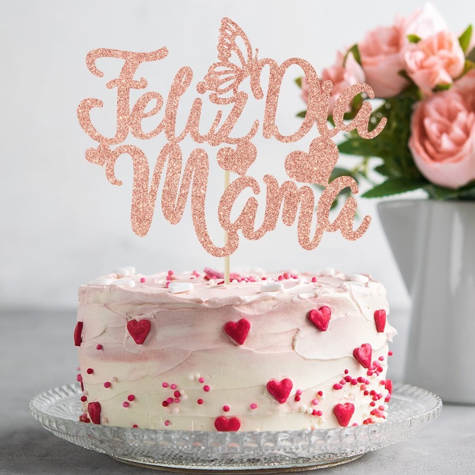FELIZ DIA MAMA CAKE TOPPER: Perfect for Mother's Day celebrations, birthdays, and special occasions honoring moms with an elegant cake decoration