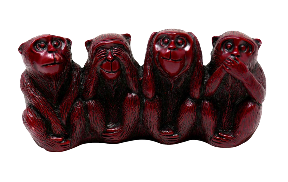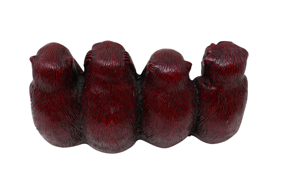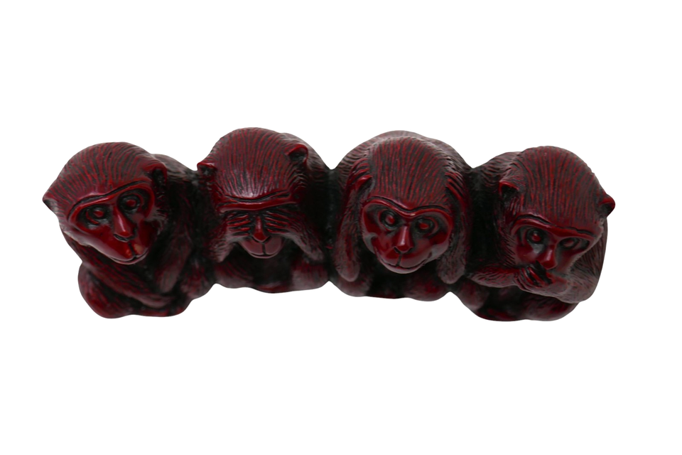Feng Shui 4 Wise Monkeys Wait Hear See Speak NO Evil Primate Statue Figurine