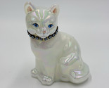 - Fenton Art Glass Iridescent Blue Necklace Cat Figurine