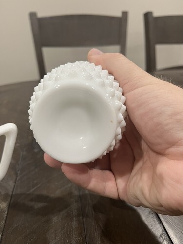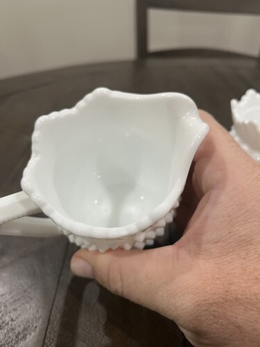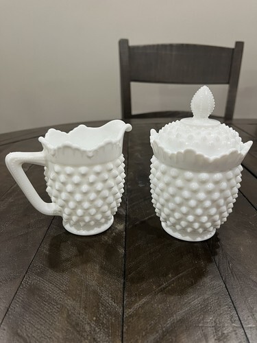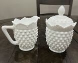 Primary image for Fenton Milk Glass Hobnail Creamer/Sugar Set Heavy-5441. No Chips/cracks