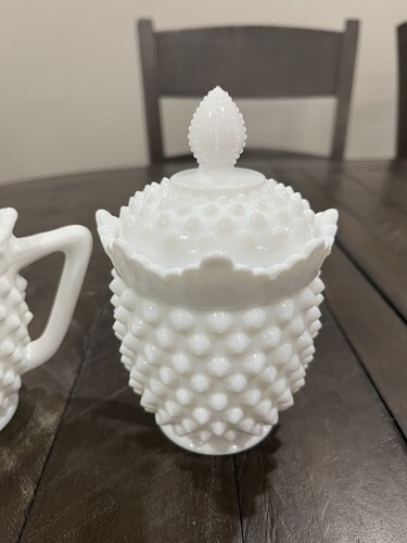 Fenton Milk Glass Hobnail Creamer/Sugar Set Heavy-5441. No Chips/cracks