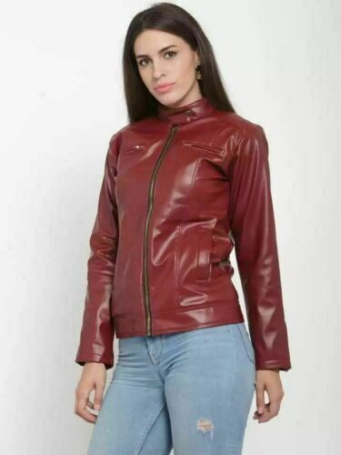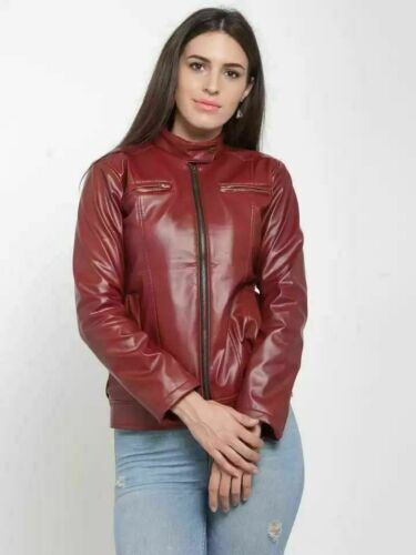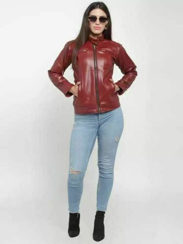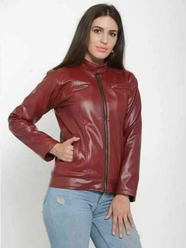 Festive Stylish Lambskin Leather Maroon Zip Women Jacket Designer Motorcycle