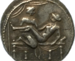 - Ficha de espintria erótica romana - denominación "VII" con escena íntima