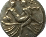 Esta llamativa pieza representa una de las raras y fascinantes fichas de espintria erotica romana, utilizadas durante el período imperial temprano, muy probablemente en el siglo I dC bajo la dinastía Julio-Claudia. El anverso representa vívidamente una escena erotica de dos figuras en una pose íntima, enmarcada por cortinas que insinúan connotaciones teatrales o rituales. Estas fichas probablemente no eran moneda, pero tenían un proposito específico en la sociedad romana, posiblemente como fichas de entrada a burdeles, mostradores de juegos o como una forma de entretenimiento privado dentro de los círculos de elite. La audacia de las imagenes subraya la compleja relacion de los romanos con la sexualidad, el espectaculo y el ritual social.