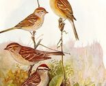 Field Chipping And Fox Sparrows 1936 Bird Lithograph Color Plate Print DWU12C