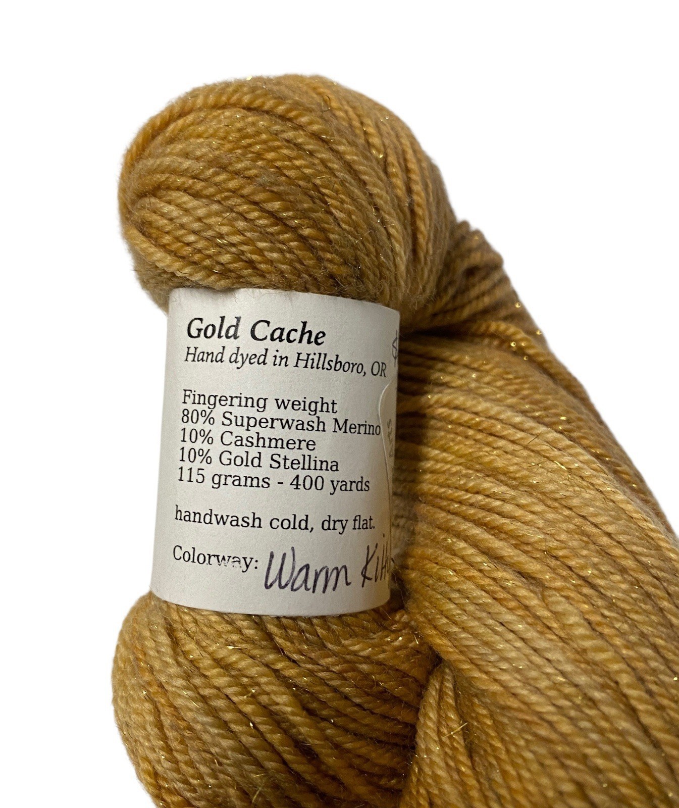 Fierce Fibers Hand Dyed Yarn Warm Kitty Superwash Merino Cashmere Gold Stellina