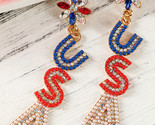 - Fiery Red Beaded Rhinestone Colorblock USA Earrings