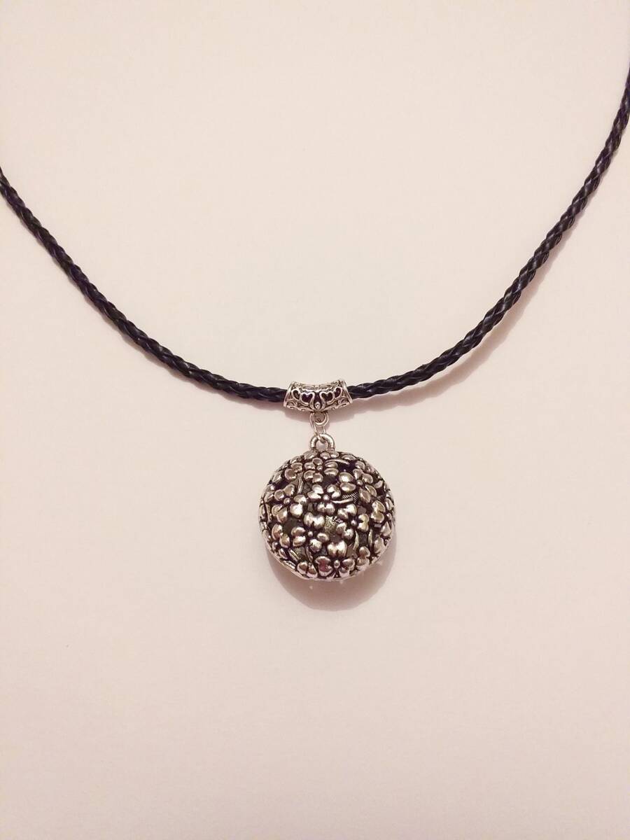 Beautiful silver-tone Flower style leather necklace. Antique style Big silver tone pendant filigree necklace. Boho necklace. Bohemian necklace. Gypsy necklace . Hippie necklace. Big silver-tone pendant black faux leather beautiful necklace.