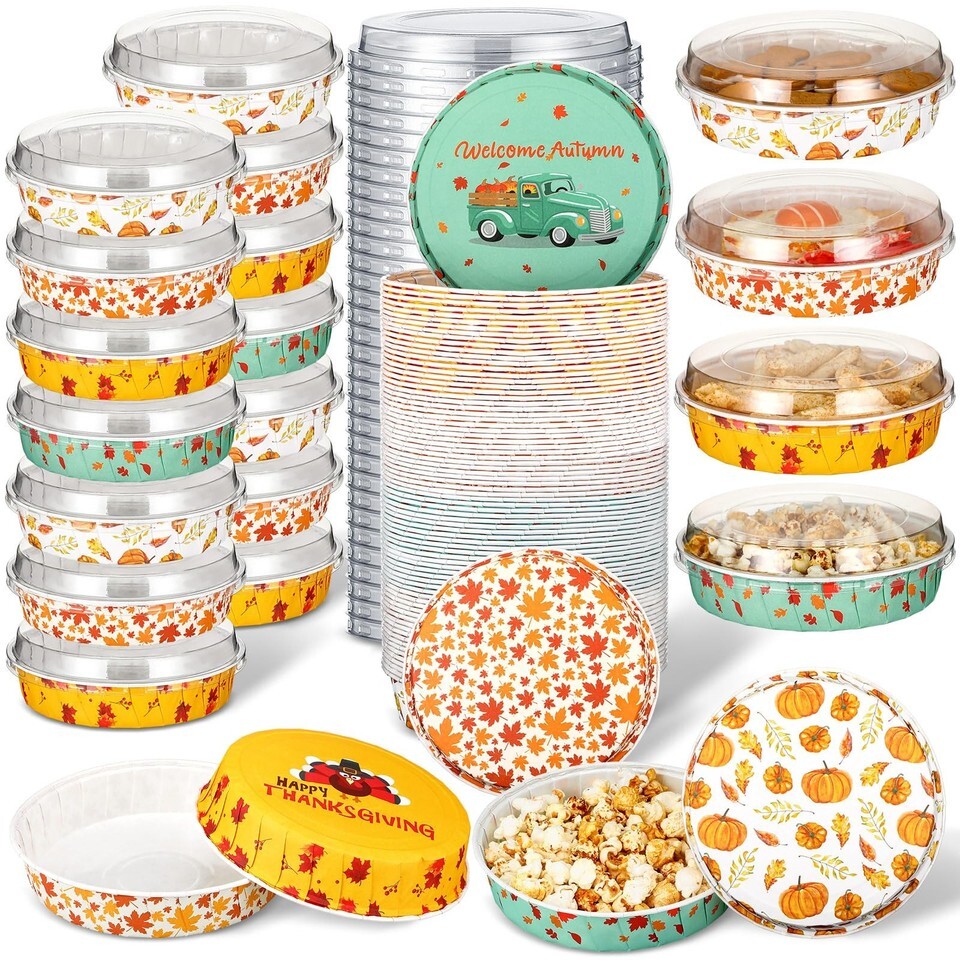 Thanksgiving Day Bread Baking Supplies Set: comes complete with 80 Thanksgiving Day disposable baking pans in 4 styles, 80 lids and 80 decorative stickers, everything you need for your holiday baking is right at your fingertips