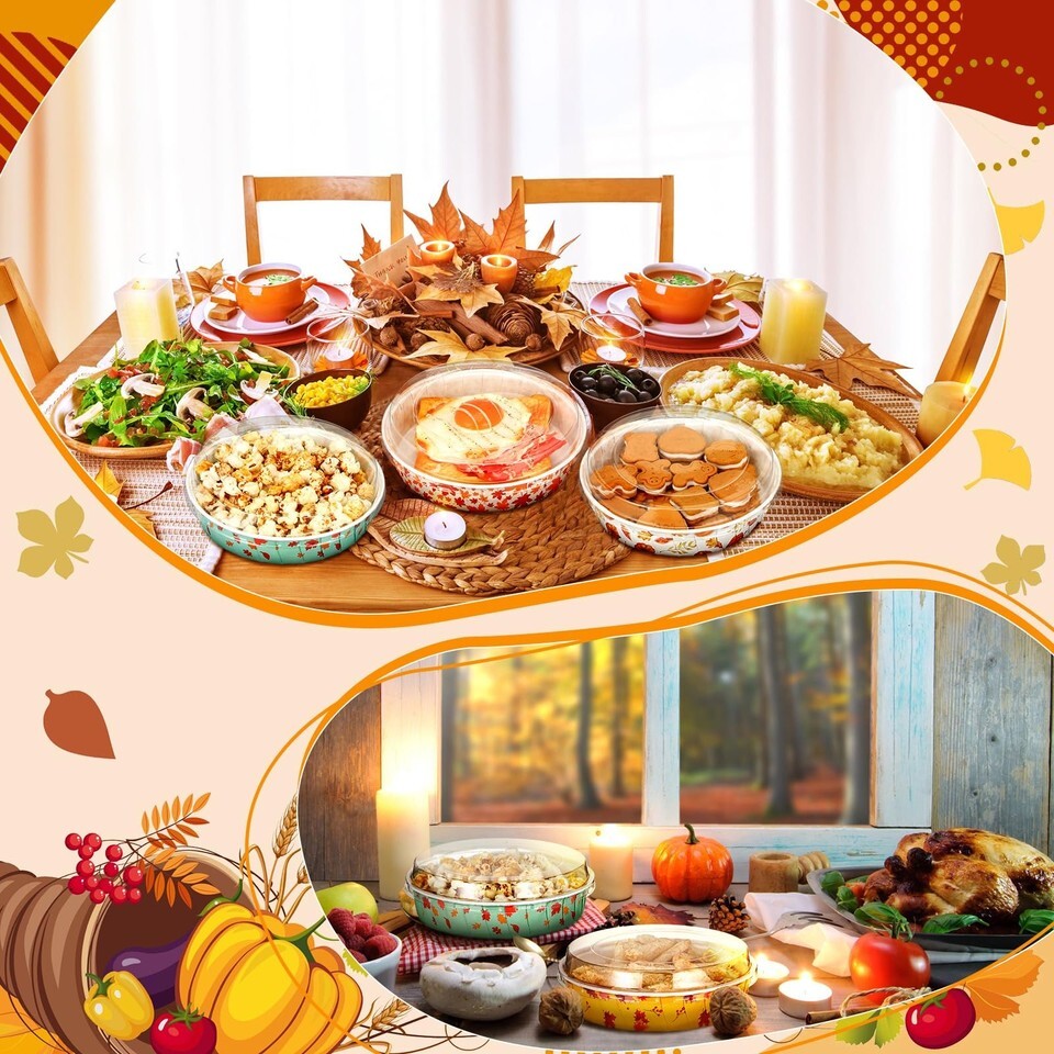 Intricate Thanksgiving Designed: designed with heartwarming Thanksgiving patterns and vibrantly colored, such as Turkey, maple, pumpkin and so on, these Thanksgiving disposable loaf pans with lids are nice for capturing the joyous spirit of the holiday season; They not only serve as a practical baking tool but also add a decorative touch to your kitchen or dining table