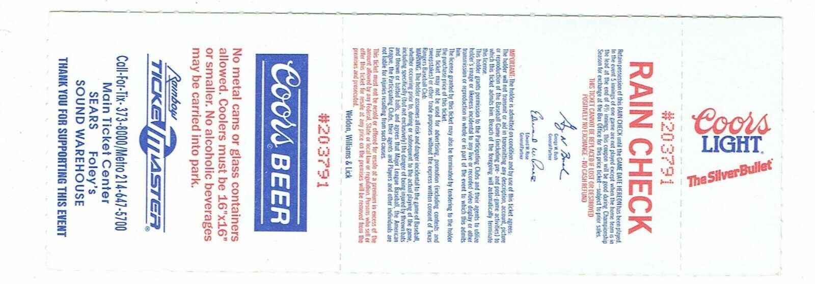 Final Weekend at Arlington Stadium Full Unused Ticket Oct 1st 1993