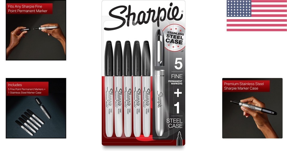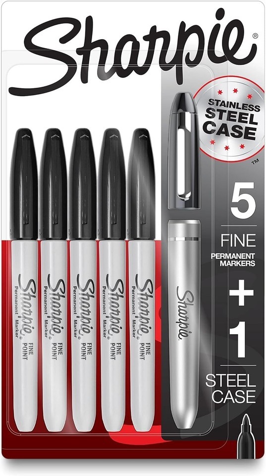 - Fine Point Permanent Markers & Sleek Steel Holder - 6 Count for Artists