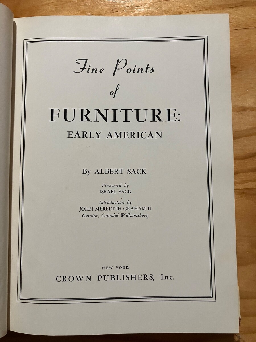 Fine Points Of Furniture: Early American by Albert Sack 1950