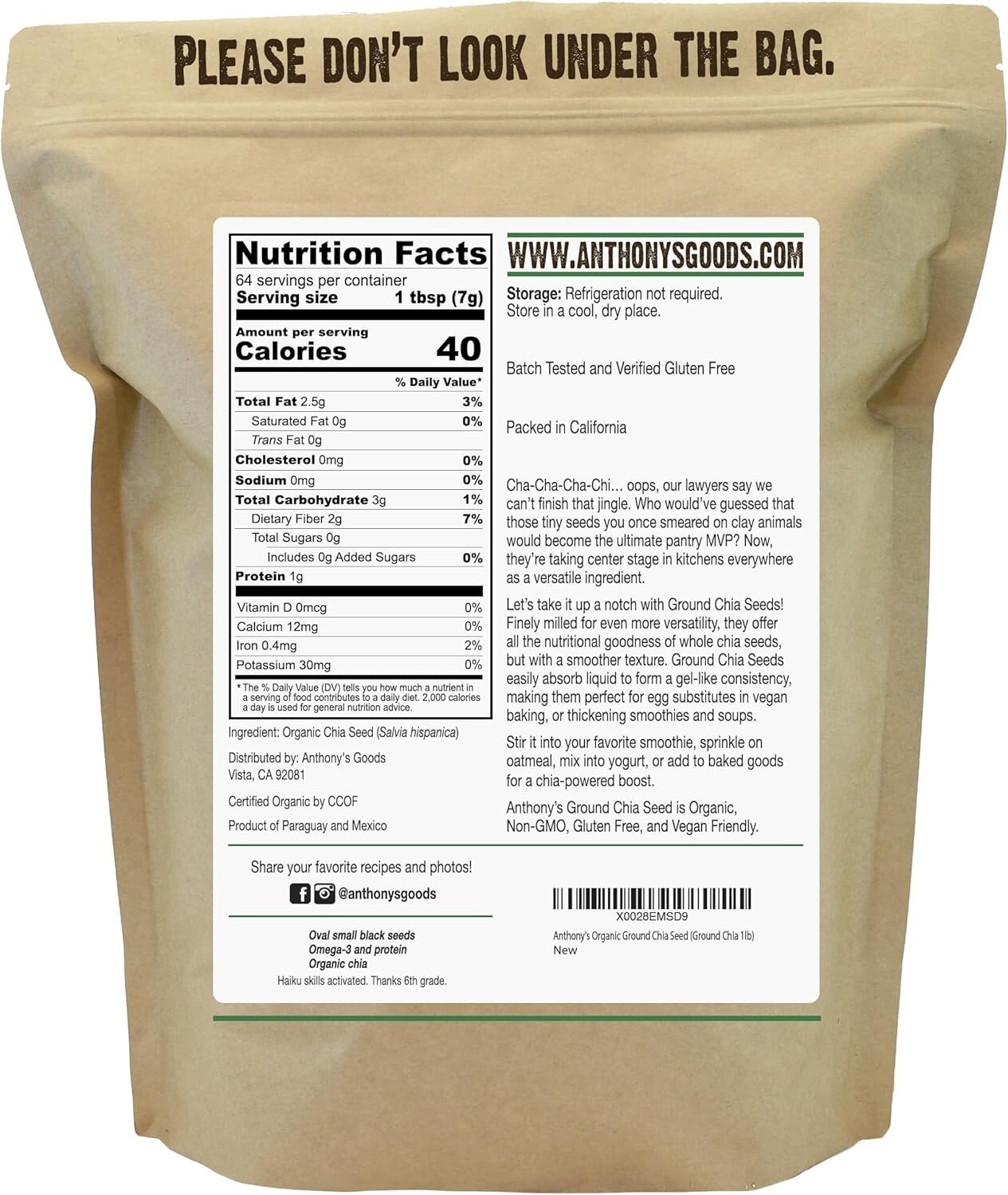 Discover our USDA Certified Organic Ground Chia Seeds?your versatile superfood for a healthier lifestyle. Batch tested and verified gluten-free, these seeds are produced in South America and carefully packed in California. Perfect as a thickening agent for soups and stews, or as a egg substitute, they are ideal for plant-based, gluten-free, keto, paleo, and recipes. Enhance your meals with this nutrient-rich, eco-friendly ingredient.