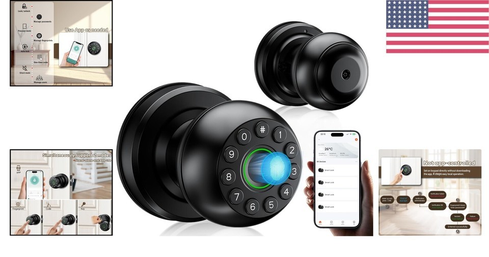 - Fingerprint Door Lock with Real Button Keypad - Sturdy Aluminum, No App Required