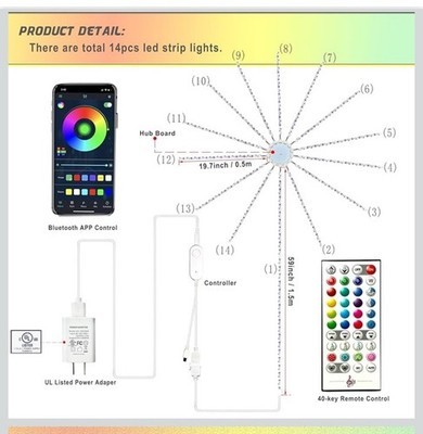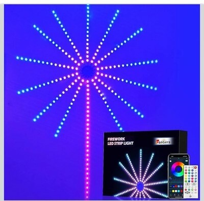 The Firework LED Strip Lights RGB Dream Color Music Sync with Remote App Control is a smart firework LED light that features 156 LED chips for a colorful and dynamic display. With a firework light shape and 2835 LED chip code, these lights are perfect for indoor and outdoor use. The lights can be controlled with a remote or digital app, offering a variety of color-changing options and music sync features. Made of plastic and powered by a corded electric source, these energy-efficient and energy-saving lights are designed for easy installation and assembly. Ideal for art deco style and themed lighting effects.
