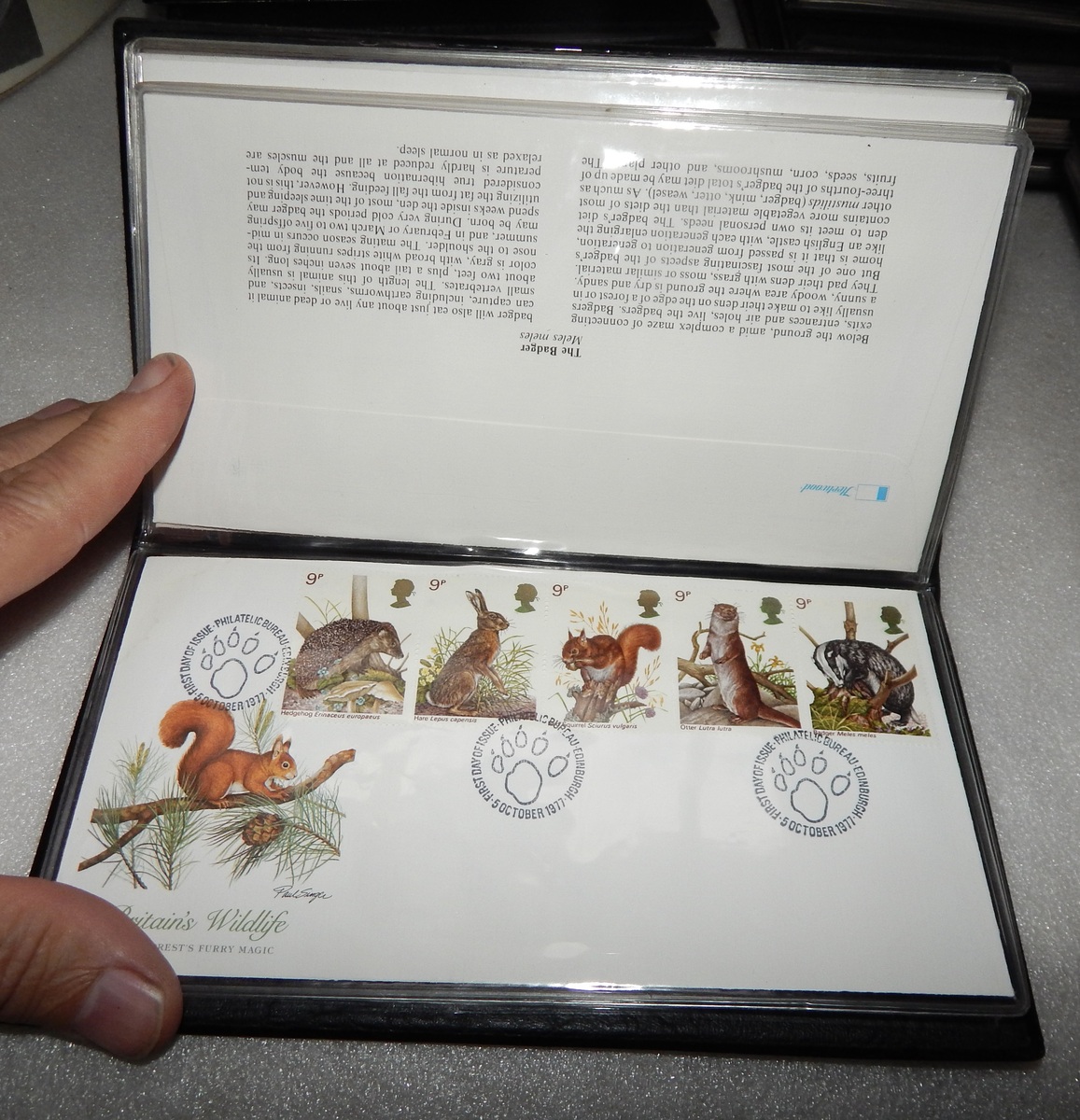 The product is a collection of 1977 United States First Day Covers featuring 9p cent stamps. Each card measures 7" x 4" and comes in mint never hinged condition. The album contains 6 cards with colorful designs, all depicting various issues of stamps from the United States. Each card is canceled with the First Day of Issue cancellation type and has the stamps on paper. Perfect for collectors or enthusiasts of United States stamps, this album offers a unique and valuable addition to any collection.