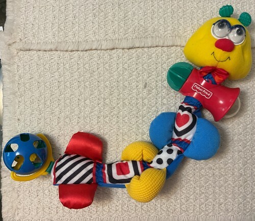 "It twists, it bends, it easily attaches to all the different places baby spends the day. From the stroller to the swing, this friendly caterpillar brings fun along so baby can benefit from its stimulating colors and activities. Squeaking surprise inside, plus interesting textures, googly eyes, spinning activities, and more. Machine washable and dryer safe." PLEASE REFER TO THE INCLUDED PICTURES IN ORDER TO UNDERSTAND EXACTLY WHAT YOU WILL BE PURCHASING. No returns and/or refunds. If you have any comments or concerns, please contact the seller before leaving negative feedback. International shipping is not an option. Shipping charges are based, in part, on the buyer's location. Buyer pays actual shipping costs. Seller is responsible for all handling fees. Customer Service is a PRIORITY for this seller! Have any questions? Don't hesitate to ask. Anxious to do business .... Thanks for viewing and/or considering this listing.