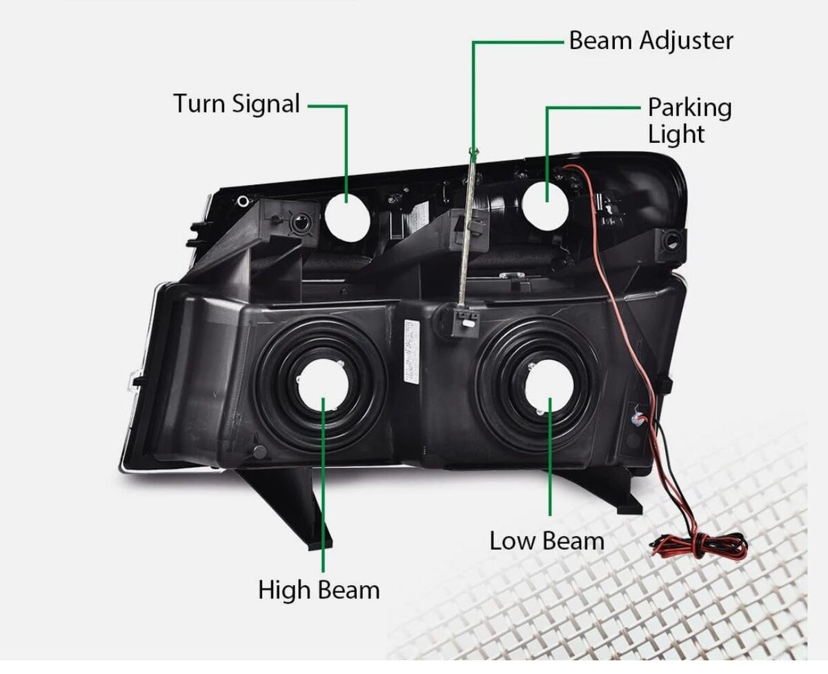 Product description: Housing Color?Black Manufacturer Part Number?J-02HLA4543B Lens Color?Smoke/Tinted Placement on Vehicle?Front, Left, Right Fitment Type?Direct Replacement Lighting Technology?Halogen Type?Headlight Assembly Reflector Color?White Package Includes:1 Pair of Headlights (Driver Passenger Side)