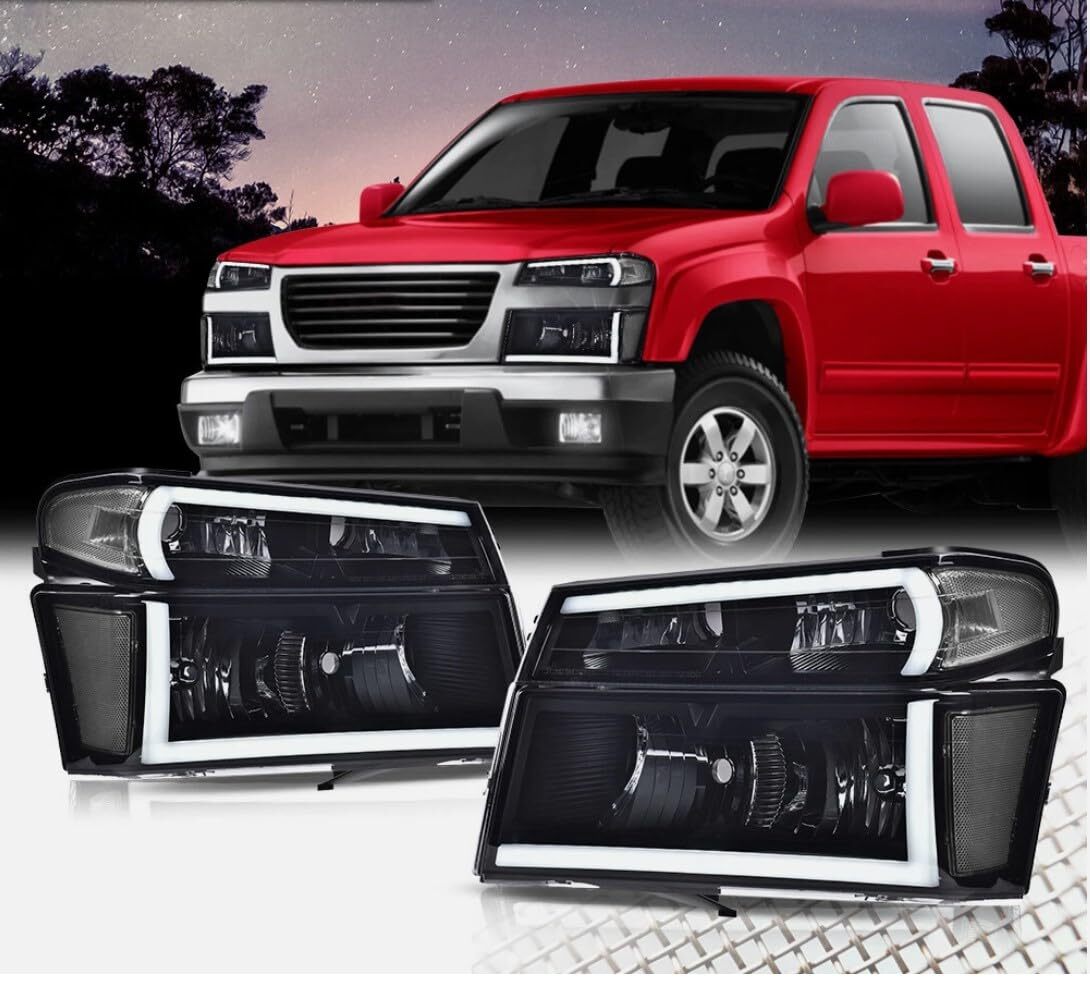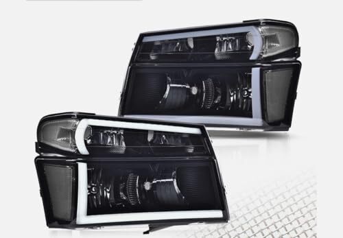 Fit For 2004-2012 Chevy Colorado GMC Canyon Smoked LED Tube Headlights Lamps 4PC