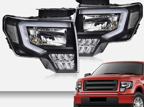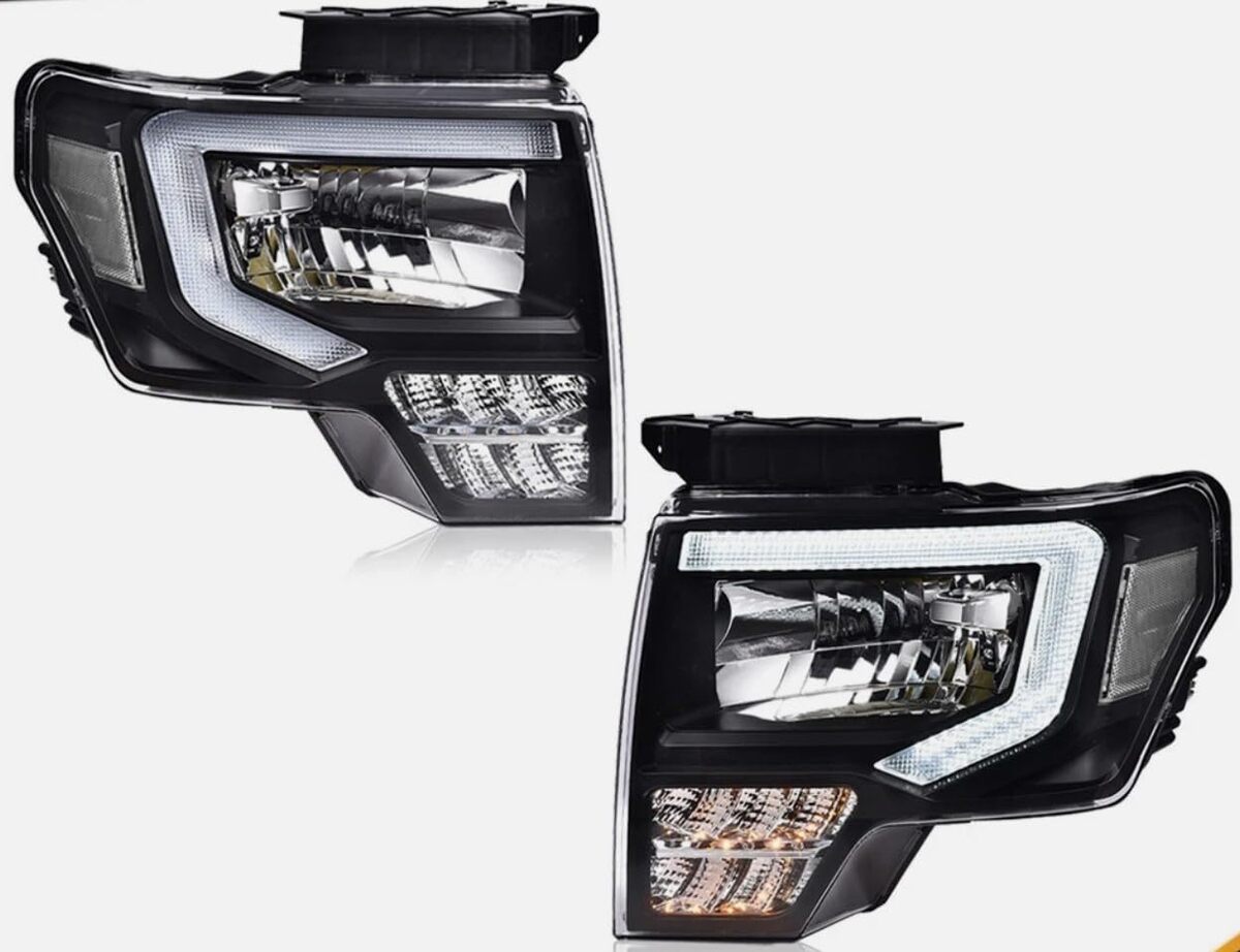 Fit For 2009-2014 Ford F150 LED Tube DRL Headlights Headlamps Black |