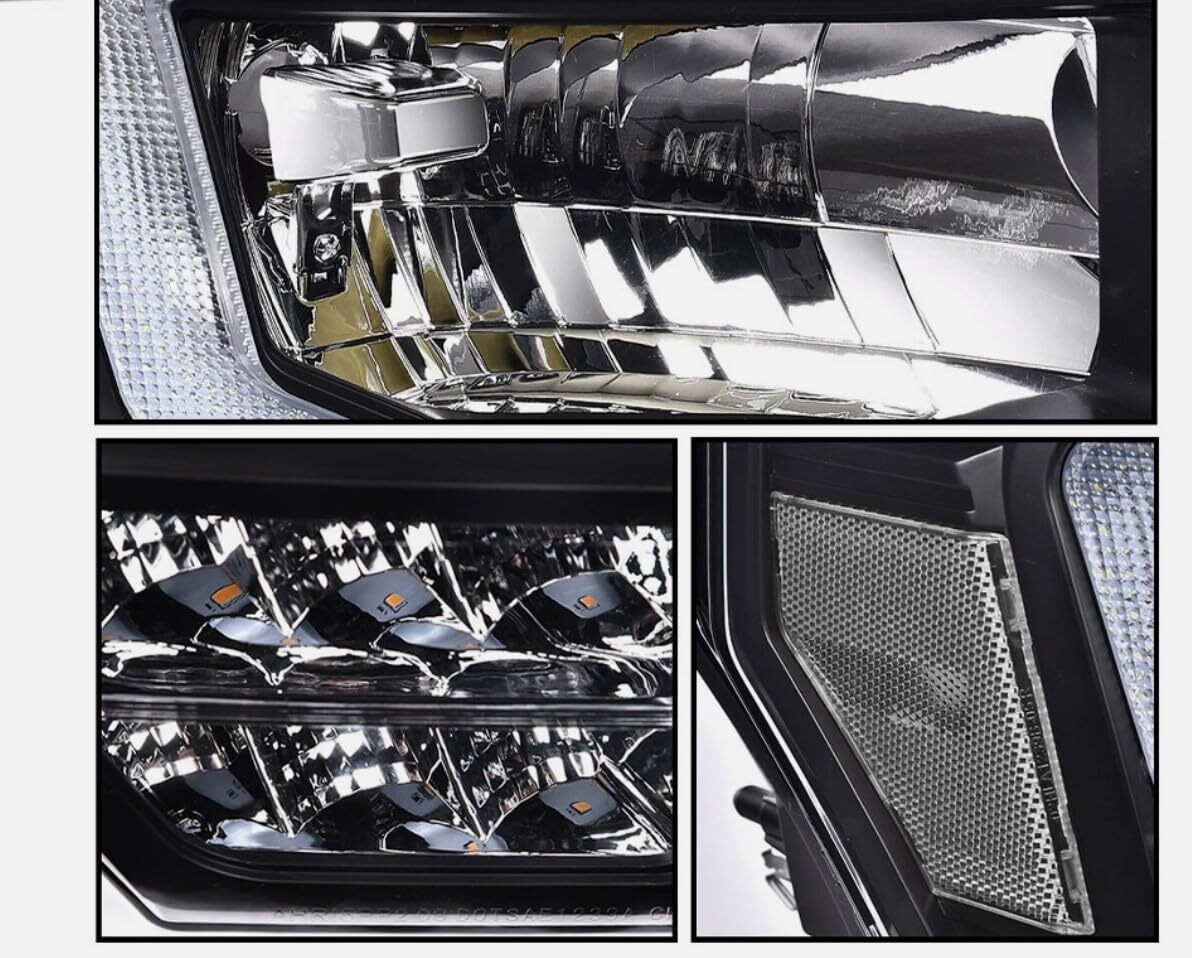 Fit For 2009-2014 Ford F150 LED Tube DRL Headlights Headlamps Black
