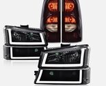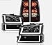 Fit For Silverado 2003-2007 LED DRL Black Housing Headlights + Tail Lights Pair