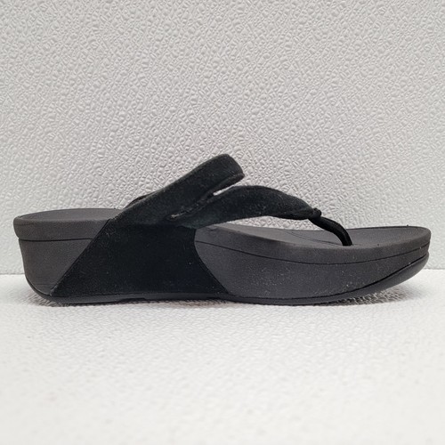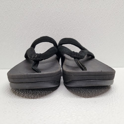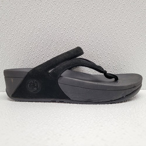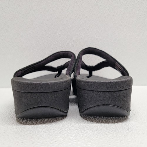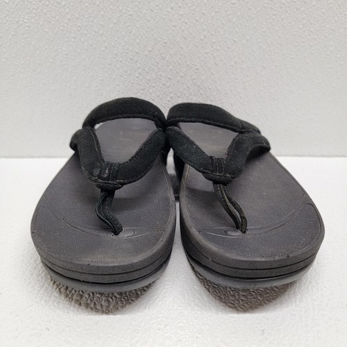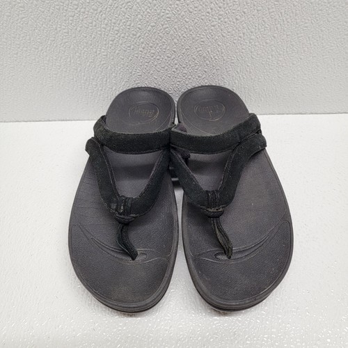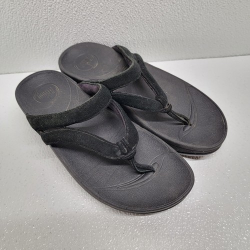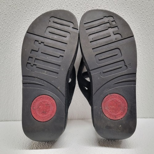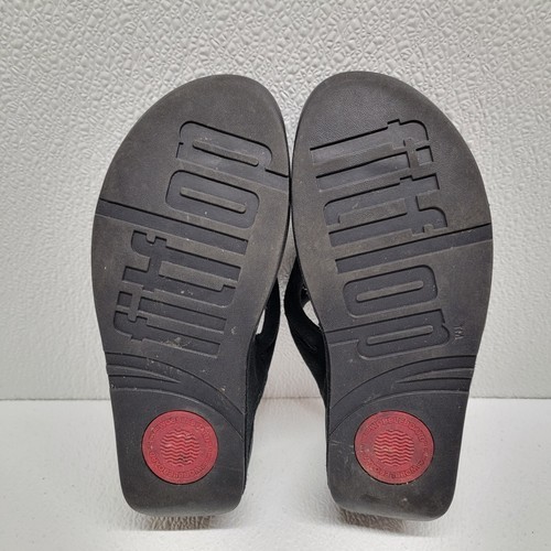- FitFlop Sandals Women's 5 Black Leather Fleur Floral Slip On Comfort Thong Shoes