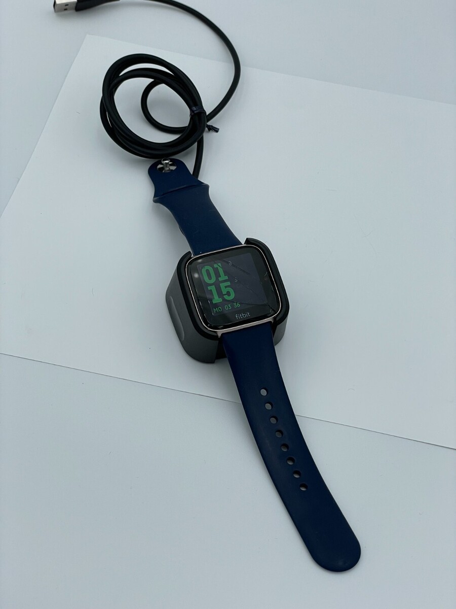 - Fitbit Versa FB505 Smart Watch Health Fitness Blue Band Silver Rose Gold GENUINE