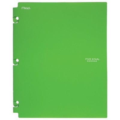 Five Star Snap-In Folder offers quick and easy storage of loose papers with an improved design that utilizes the folder spine for better durability. The pocket folder snaps in and out of binder without opening the rings, and locks in place. Two horizontal pockets neatly manage homework, class handouts and more. Stay-put tabs at the top can hold page corners to keep papers in place, and the reinforced spine also prevents papers from shifting. Durable one-piece plastic construction ensures the 2-pocket folder will last all year.