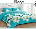 - FLAMINGO FLOWERS BLUE BLANKET WITH SHERPA SOFTY AND WARM 3 PCS QUEEN SIZE