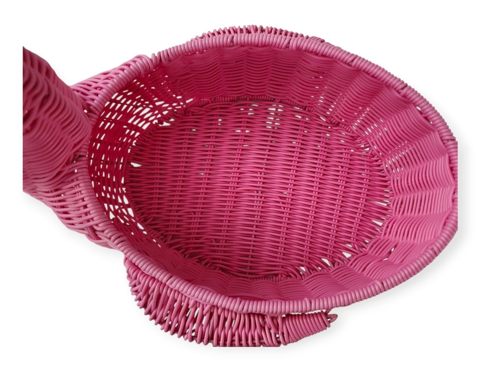 This vibrant wicker basket is both a decorative and functional piece. Its flamingo-inspired design adds a tropical charm to any setting, while its sturdy construction ensures durability for storage or display purposes. Ideal for holding small items or as a statement decor piece for homes, events, or gift arrangements.17"Long x11.5" Tall x12" Wide
