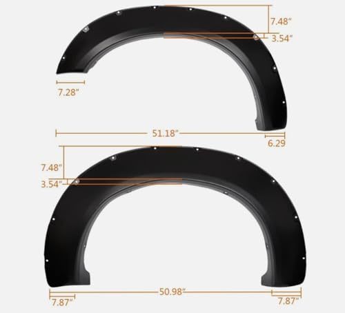 Product description: 100% brand new in packaging. Four pieces set of pocket rivet style flares. (2 for front and 2 for rear) Made of polypropylene in black finished. Full protection from mud scratches, sand and other outer damages for your wheels. Helps to reduce spray and protects paint with fender flares.
