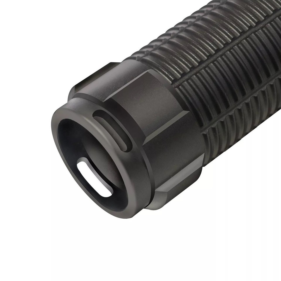 The flashlight's onboard electronics monitor your battery power and alert you when levels reach 20%, ensuring you're never caught off guard with a dead battery.
