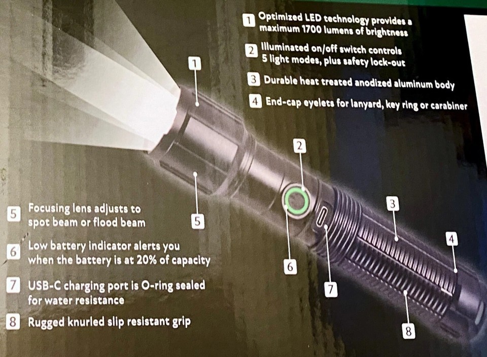 Member's Mark 1700 Lumen Dual-Powered, Impact-Resistant Flashlight