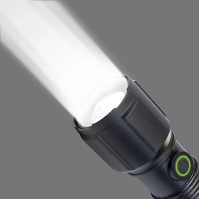 It also includes a progressive focusing lens that adjusts from a tight spot beam to a wide-angle flood beam with a simple push-pull action.