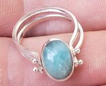 Flip 2 in 1 LARIMAR-AMBER gemstones 925 sterling silver reversible ring size 6 (mi-15)