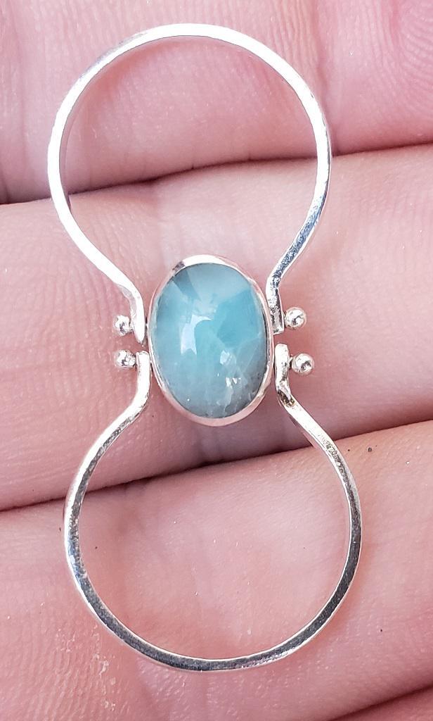 - Flip 2in1 LARIMAR-AMBER gemstones 925 sterling silver reversible ring (mi-15)
