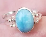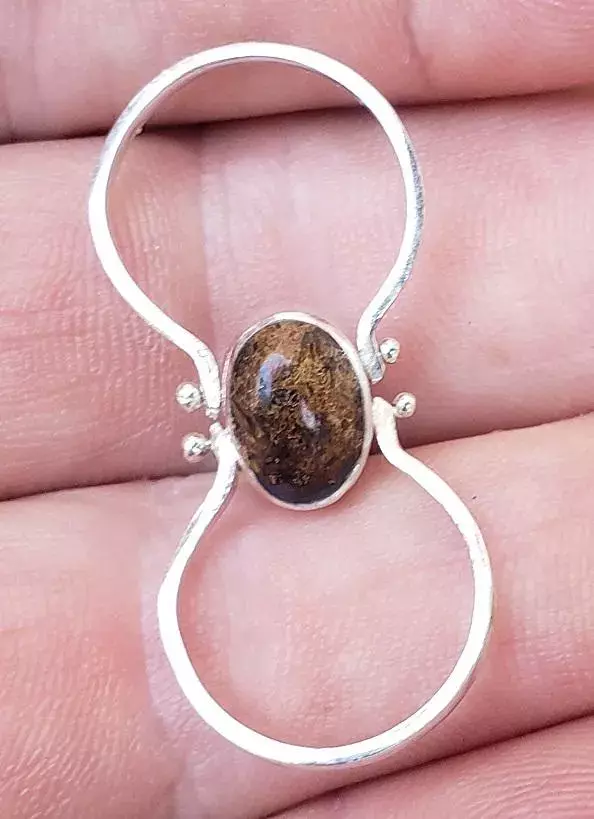 Flip 2 in 1 LARIMAR-AMBER gemstones 925 sterling silver reversible ring size 5 (mi-19)