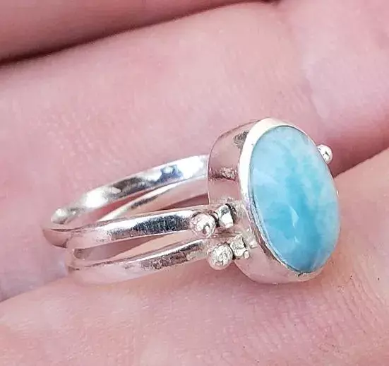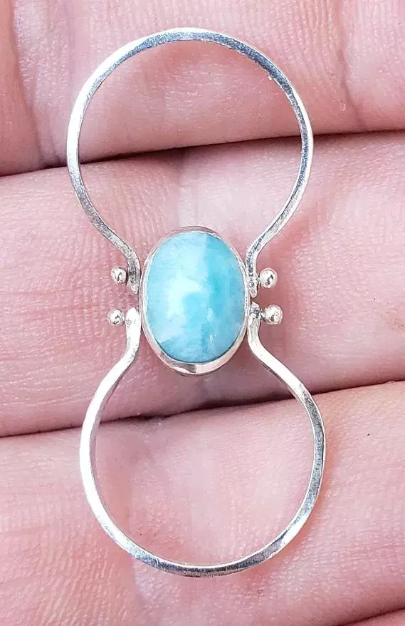 THIS REVERSIBLE RING IS HANDMADE WITH NATURAL LARIMAR - AMBER gemstones and 925 sterling silver.